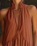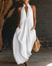 Robe 100% Coton Sans Manches Col Montant Unie Maxi