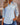 Chemisier tendance à manches lanternes et col en V de couleur unie