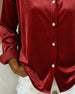 Chemisier tendance à manches lanternes et col en V de couleur unie