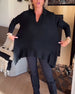 Chemisier tendance à manches lanternes et col en V de couleur unie
