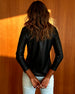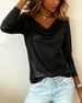 Chemisier tendance à manches lanternes et col en V de couleur unie