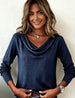 Chemisier tendance à manches lanternes et col en V de couleur unie