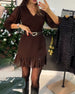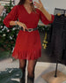 SPÉCIFICATIONS Style: Décontracté Matériel: Mélange de coton Type de la robe: A-Line Longueur de la robe: Au-dessus du genou Forme du col: Col en V Type du dessin: Couleur pure Type de la manche: Manches régulières Longueur de la manche: Manches longues Détails: Dentelle Type d'ajustement: Habituel Saison: Automne,Hiver Occasion: Quotidien Con...