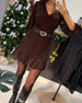 SPÉCIFICATIONS Style: Chic Matériel: Mélange de coton Type de la robe: Robe jambe droite Longueur de la robe: Au-dessus du genou Forme du col: Col rond Type du dessin: Couleur pure Type de la manche: Manches régulières Longueur de la manche: Manches longues Détails: Forage à chaud Type d'ajustement: Habituel Saison: Automne,Hiver Occasion: Quo...