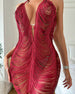 Robe Maille Brûlant Strass Slim Fit Près Des Hanches