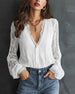 Blouse À Manches Longues En Dentelle Avec Col En V