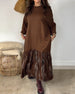 SPÉCIFICATIONS Style: Décontracté Matériel: Mélange de coton Type de la robe: T-shirt Longueur de la robe: Maxi Forme du col: Col rond Type du dessin: Impression Type de la manche: Manches d'épaule tombées Longueur de la manche: Manches longues Détails: Couture de matériau,Irrégulière Type d'ajustement: Ample Saison: Automne,Hiver Occasion: Qu...