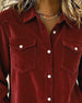 SPÉCIFICATIONS Type de la veste: Chemise/Chemisier Style: Décontracté Matériel: Velours côtelé Occasion: Quotidien,Travailler Forme du col: Col de chemise Type du dessin: Couleur pure Type de la manche: Manches régulières Longueur de la manche: Manches longues Type d'ajustement: Habituel Saison: Automne,Hiver Détails: Poche,Boutons Contenu du ...