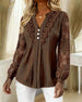 Blouse Dentelle Panneaux Manches Longues Col V