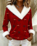 Top Grand Col Fourrure Imprimé Noël