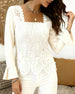 Blouse Crochetée À Encolure Large Et Détails Patchwork