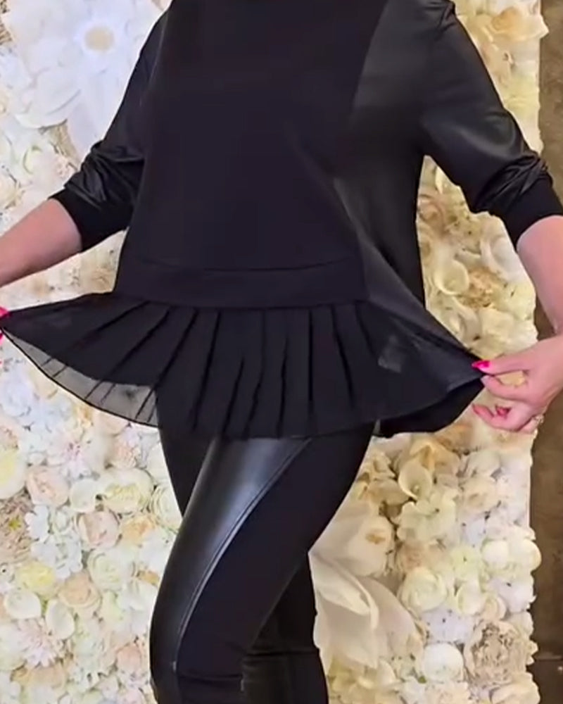 Blouse Couleur Unie Revers Dentelle Patchwork
