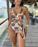Maillot de bain décontracté à poches et col en V imprimé deux pièces