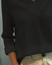 Blouse Froncé Col En V Manches Longues