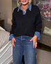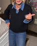 Haut Couleur Contraste Col V Rabattable