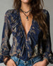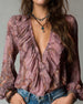 Blouse Profond V Volant Imprimé Élégant