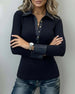 Haut Décontracté Col Rond Design Bouton