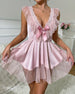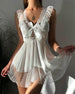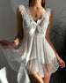 Robe nuisette en dentelle brodée de papillons et de fleurs