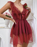Chemise De Nuit Sans Manches Sexy Dentelle Empiècement