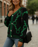 Cardigan Tendance À Manches Longues Avec Couleur Contrastante