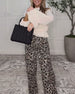Chemisier tendance à manches lanternes et col en V de couleur unie