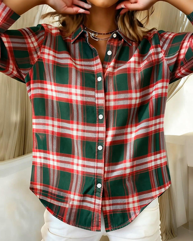 Chemisier à manches courtes et imprimé boutonné à col en V