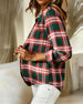 Chemisier tendance à manches lanternes et col en V de couleur unie