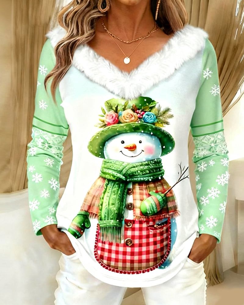 Chemisier tendance à manches lanternes et col en V de couleur unie