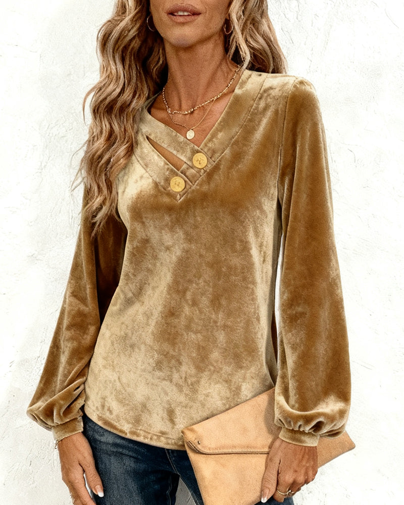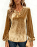 NOUV Icon1 Haut Col En V Velours Manche Lanterne