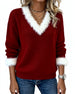 NOUV Icon1 Haut Couleur Contrastée Col En V Manches Longues
