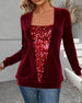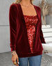 NOUV Icon1 Top Fausse Deux Pièces Paillettes Manches Longues