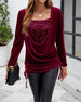 NOUV Icon1 Top Paillettes Velours Cordon Manches Longues