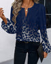 Blouse décontractée en dentelle boutonnée à manches plissées de couleur unie