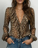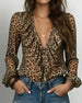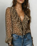 Blouse À Volants Col En V Imprimé Léopard