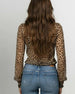 Chemisier décontracté col en V imprimé léopard empiècement en dentelle