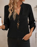 Blouse décontractée de couleur unie avec col en V et manches trois-quarts