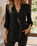Tunique Casuelle avec Manches Longues Pincées et Col en V