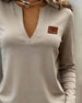 Haut Grande Taille À Col Drapé Et Manches Longues