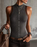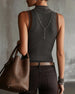 Débardeur Demi-Col Roulé Sans Manches Tricoté