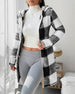 Manteau À Capuche En Polaire À Carreaux Pour Femme, Manches Longues