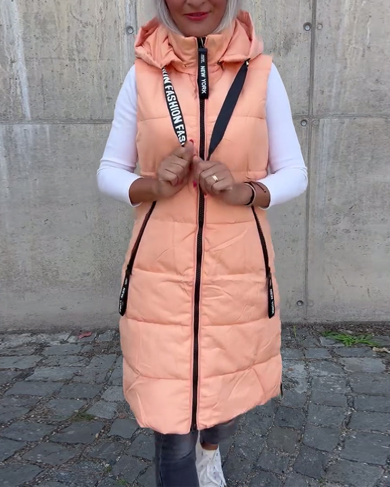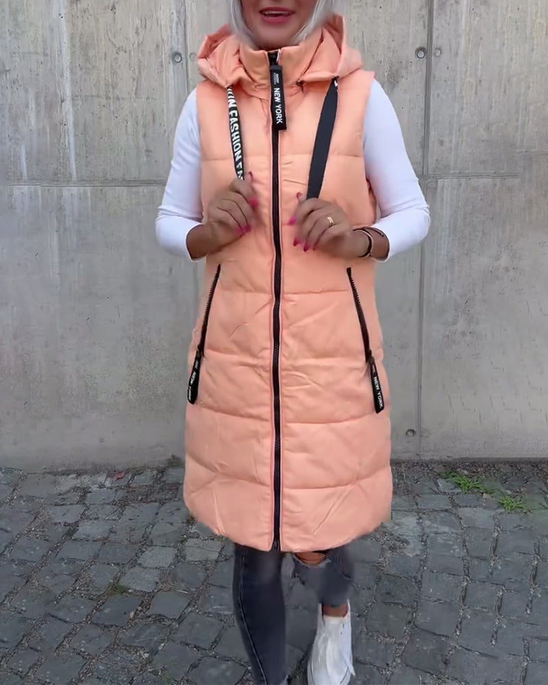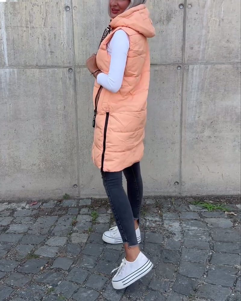 Manteau gilet à capuche de couleur unie