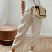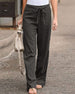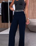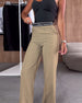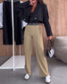 Pantalon droit décontracté de couleur unie avec poche zippée