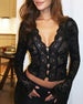 Robe nuisette en dentelle brodée de papillons et de fleurs