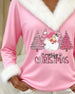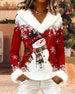 Haut décontracté à col en V et imprimé bonhomme de neige