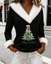 Top Grand Col Fourrure Imprimé Noël