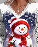 Haut Dentelle Patchwork Bonhomme de Neige Imprimé