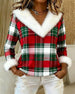 Haut En Peluche À Col En V Et Patchwork À Carreaux