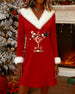 SPÉCIFICATIONS Style: Décontracté Matériel: Mélange de coton Type de la robe: A-Line Longueur de la robe: Au-dessus du genou Forme du col: Col en V Type du dessin: Père-Noël,Verre à vin de Noël Type de la manche: Manches régulières Longueur de la manche: Manches longues Détails: Couture de matériau Type d'ajustement: Habituel Saison: Automne,H...