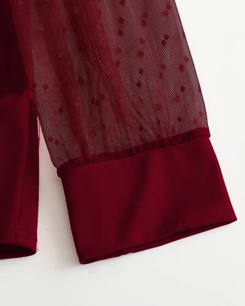 Chemisier tendance à revers en dentelle et manches longues