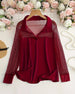 NOUV Icon1 Blouse En Résille Col À Revers Coupe Ajustée